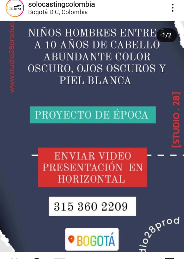 CASTING en BOGOTÁ: Se busca NIÑA y NIÑO de 10 años para proyecto de época